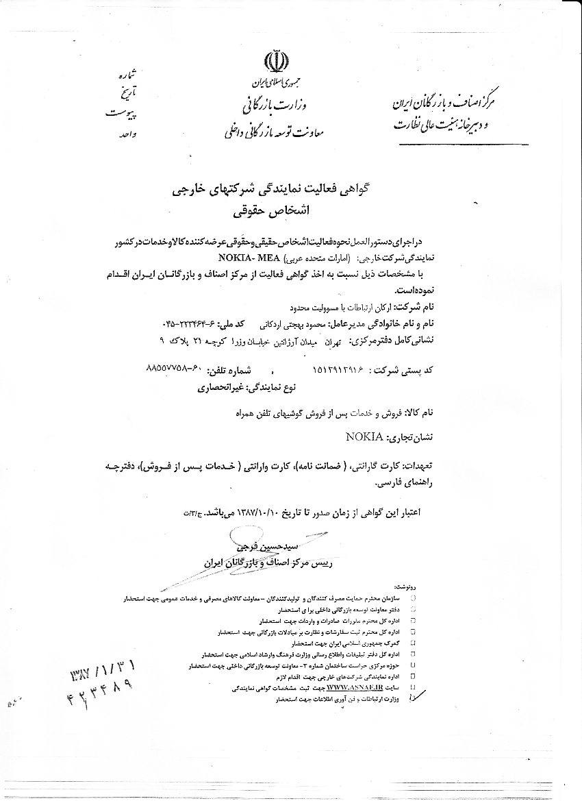 شرکت ارکان ارتباطات هم به جمع نمایندگان رسمی نوکیا در ایران پیوست.